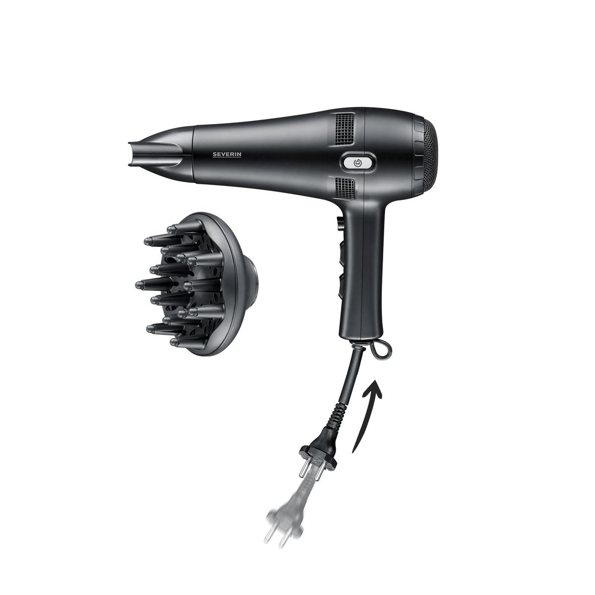 Severin HT 0165 Hair Dryer 2100 W Black Automatic Cable Reel Concentrator and Diffuser Included