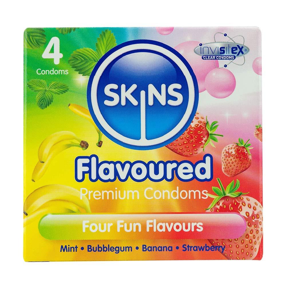 Skins Flavoured Condoms 4 Pack Strawberry Mint Bubblegum Banana 190 x 52 mm