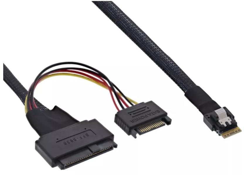 Cable inline slim sas. sff-8654 a u.2 sff-8639 + alimentacin sata. 24 gb/s. 0.5 m