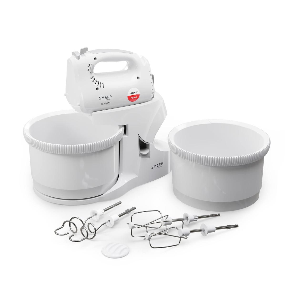 SMAPP Μίξερ Χεριού 580W Με 2 Κάσες 3.3L Η Καθεμία Λευκή