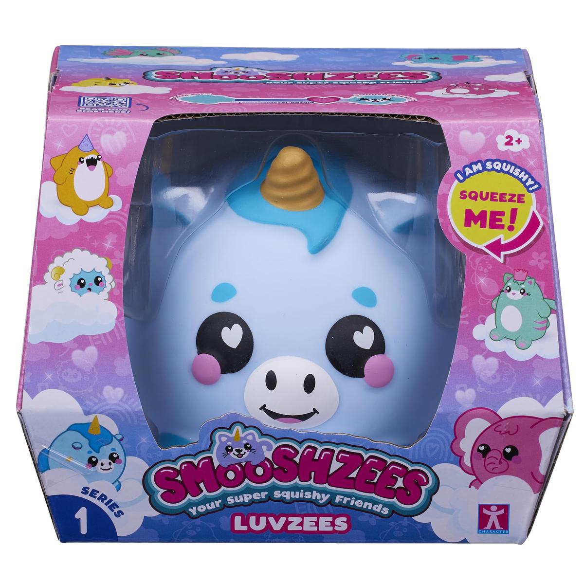 Smooshzees are a range of huggable, adorable, collectable supersoft fibrefill characters with a stretchy peach soft outer skin. There are Three sizes to choose from the tiny adorable Cutezees, The squishy mid sized Luvzees, and the Larger huggable Snugzees!