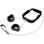 Ouch! Περιλαίμιο με Velcro, Λουρί και Χειροπέδες Μαύρο και Λευκό