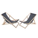 WOODOK Set of 2 Beechwood Sun Lounger Chairs 119 x 60 cm Grey 120 kg Capacity DIY Assembly