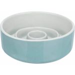 Trixie Slow Feeding Ceramic Dog Feeder 14 cm Diameter 450 ml Capacity Grey and Blue