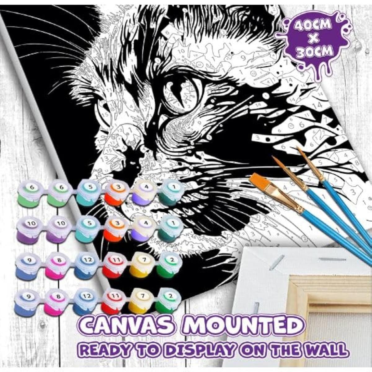Splat Planet Paint by Numbers Kit Multicoloured 24 Acrylic Colors Linen Canvas