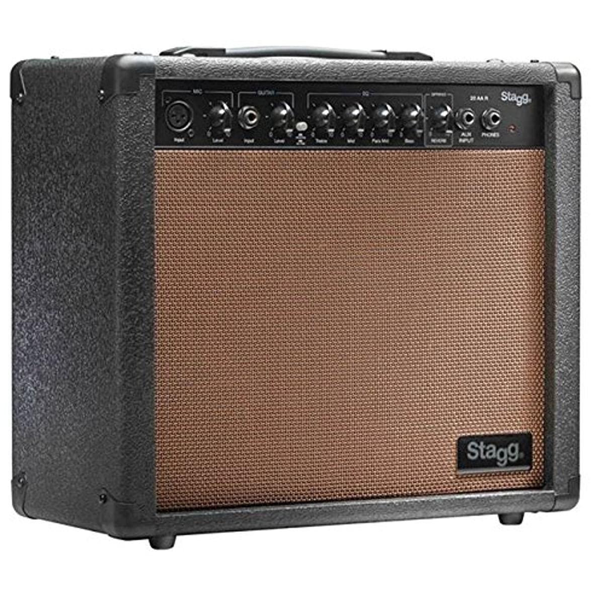 Combo for electro acoustic guitar. Combo is equipped with single 8"" speaker, headphones output and an amp with 20 W of power. Dialing up your favorite sound is much easier with an onboard EQ (Bass/Mid/Treble), knob for spring reverb, active and passive switch or separate volume controls for mic (XLR) and guitar. Combo allows you to jam with your favourite artists with a 6,3 mm jack for connecting MP3 or CD player. Dimensions: 34 x 35 x 20 cm.