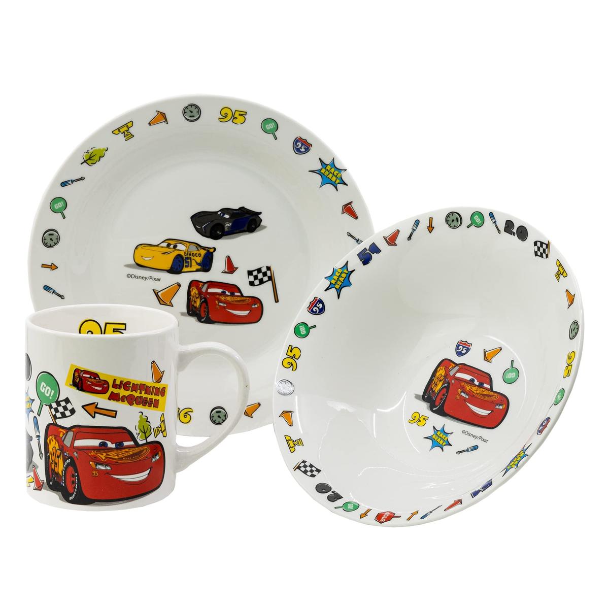 Stor Σετ Δώρου 3 Τεμάχια Cars Κεραμικό Πιάτο Μπολ Κούπα