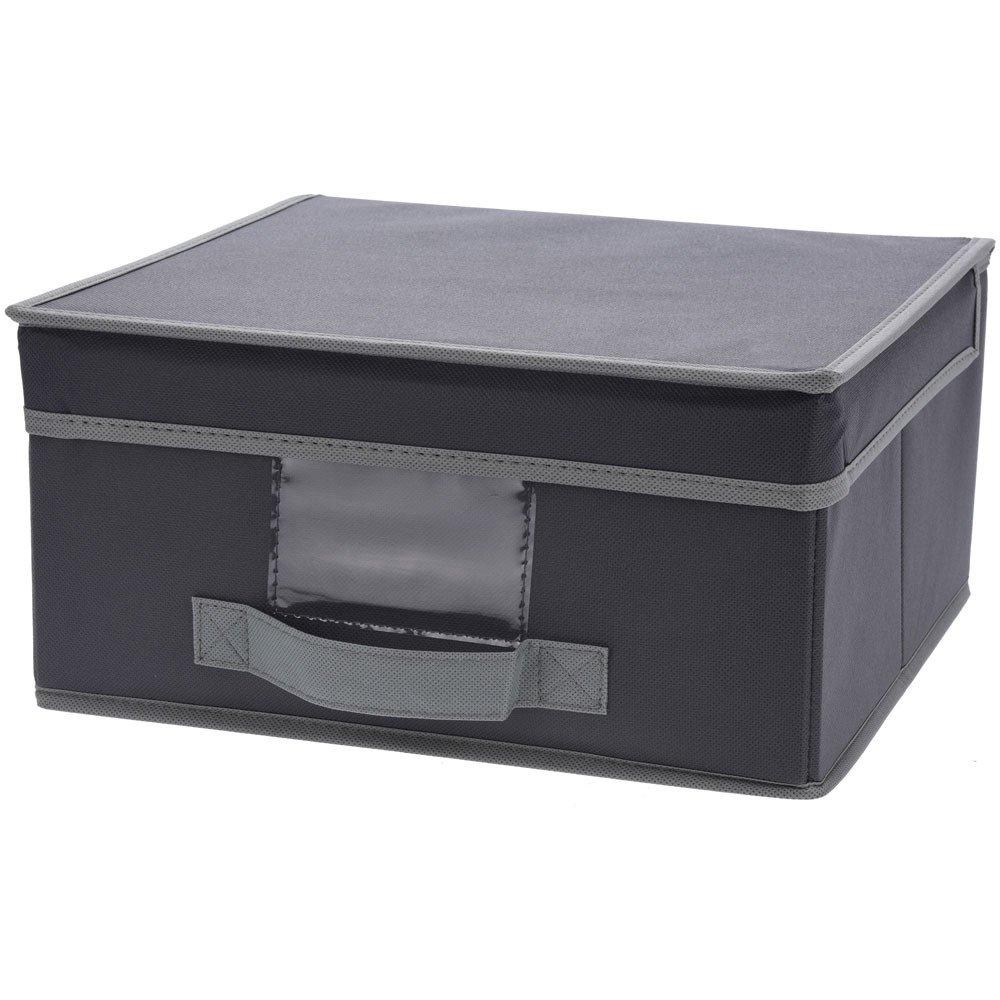 Multifunctional storage container made of durable and stain-resistant material. Features an easy-to-open lid for quick access to stored items and prevents them from getting dusty. Equipped with a handle for easy pulling and a space for labeling the contents. Takes up little space when folded. Perfect for home, office, and children's room.