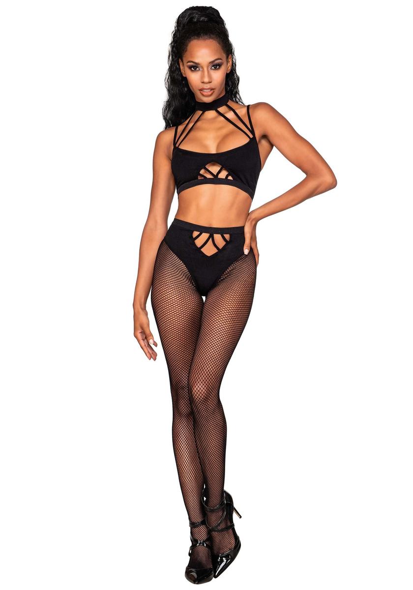 Strappy Bralette and Pantyhose Set One Size