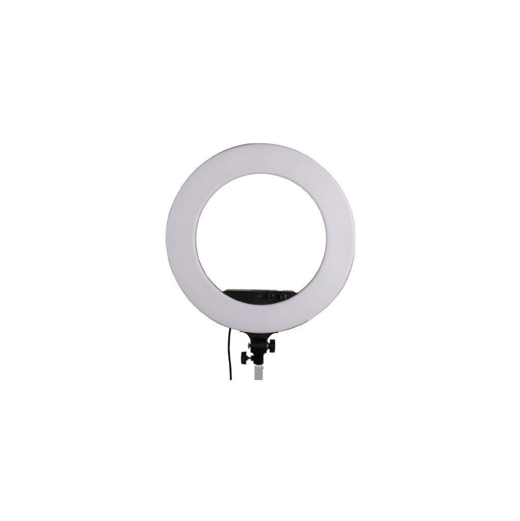 The StudioKing LED-480ASK is a LED ring lamp, specially designed for visagists, models and vloggers. The included magnifying mirror and smartphone holder can be placed in the ring lamp for a precise make-up procedure. After that you can make the perfect selfie or beauty vlog. The ring lamp provides a strong natural light. Of course, it is also possible to place a DSLR camera, using the 1/4"" male adapter found at the optional accessories section. To attach accessories, both the front and top of the LED 480ASK are provided with a 1/4"" female thread. On top of the LED-480ASK theres a cold shoe connection. At the bottom of the LED-480ASK there is a tilting bracket for placing the LED lamp on virtually any lamp stand.The power of 100 watts provides powerful results. With the two turning knobs on the front of the LED-480ASK, you can set the power of the LEDs with a cold and hot temperature separately. The range of the color temperature is 3200K up to 5800K. The CRI value of 90 guarantees natural and rich colors. The 480 built-in LED lights spread the light at an angle of 120 degrees. With the supplied power cable, with a length of two meters, you can connect the LED-480ASK to an power socket. The inside diameter is 30 cm.Where a large mirror with surrounding light bulbs was previously been used in a professional changing room, the same result can now be achieved with a compact, LED ring light. Ideal for applying makeup and making the most beautiful selfies. The mirror has two sides, one with an enlargement. For both men and women, the LED-480ASK contributes to a beautiful, natural picture. The shape of the LED-480ASK also provides beautiful circles in the models eyes. You can take the LED-480ASK everywhere with you in the included bag.