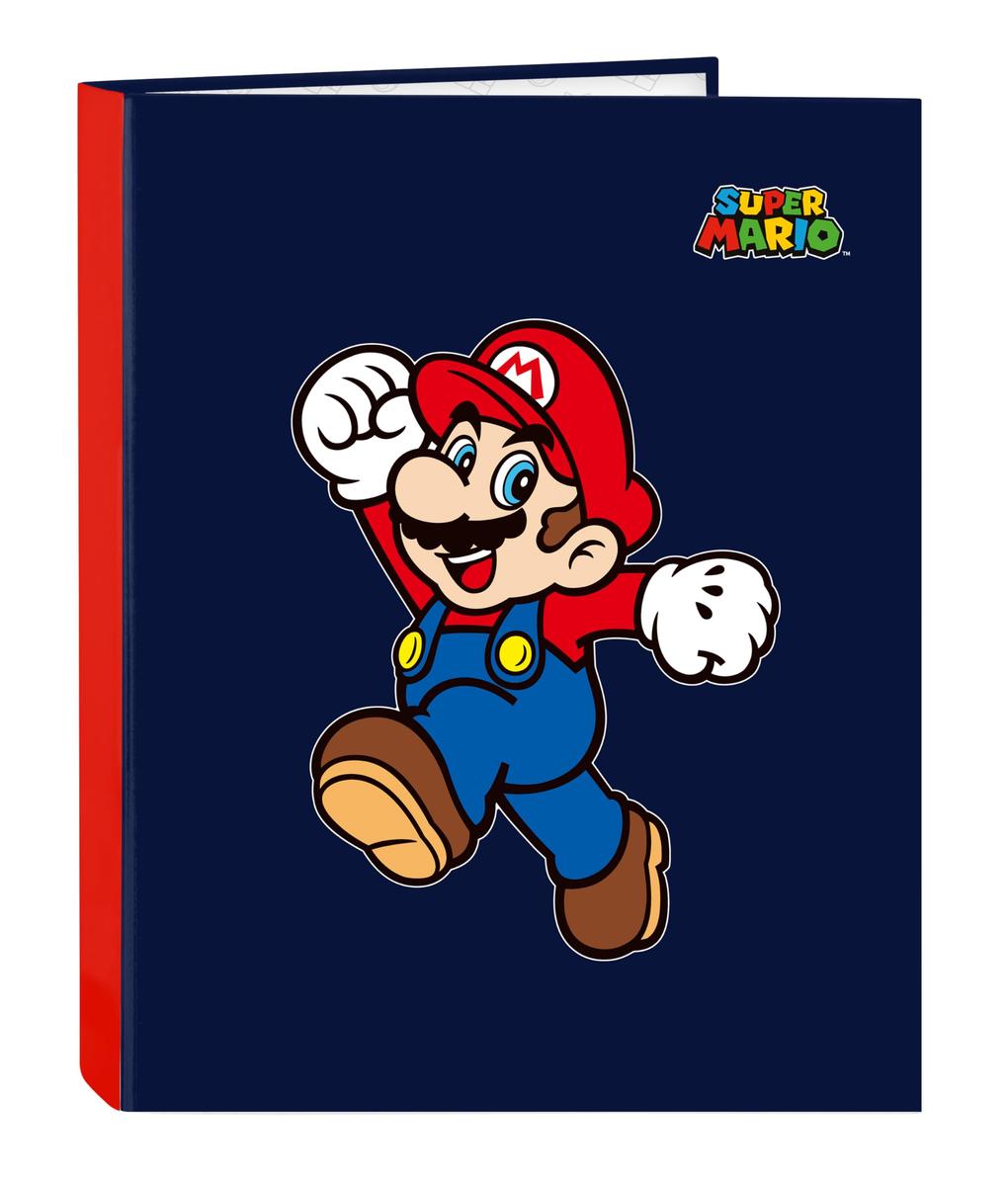 Return to the office without forgetting a single thing! Buy Ring binder Super Mario World Navy Blue A4 26.5 x 33 x 4 cm and be the envy of your colleagues!Type: Ring binderSchoolColour: Navy BlueSize: A4Material: Polyester 600DCharacteristics: Hard coverRings: 4 Rings (25 mm)Approx. dimensions: 26.5 x 33 x 4 cm