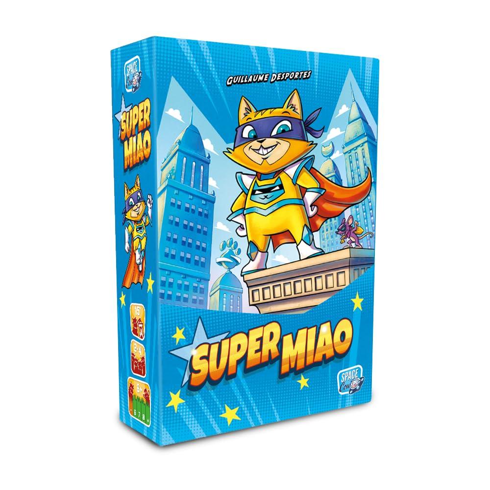 Super Miao, il supereroe felino, è scomparso! Se lo trovate per primi, vi farà sicuramente diventare suoi aiutanti! Prendete il vostro zaino, perché state per partire per un&rsquoavventura!Obiettivo: essere i primi a trovare Super Miao.Per fare ciò, comprate oggetti (carte) che vi permetteranno di attirarlo (con delizioso cibo per gatti) e vestirlo (con il suo incredibile mantello rosso).Non appena avete davanti a voi 1 carta Gatto e 1 carta Mantello, avete vinto la partita!Comprate carte dal mercato per costruire il vostro mazzo!Scartate le carte di cui non avete più bisogno.Se siete la prima persona ad avere sia un gatto sia un mantello davanti a voi, avete vinto! Avete trovato Super Miao!Contenuto: 49 carte, 1 scatola del gioco &ldquocustodia&rdquo, 1 tessera Banca, 4 carte Giocatore, 4 carte Partenza, 1 Regolamento.