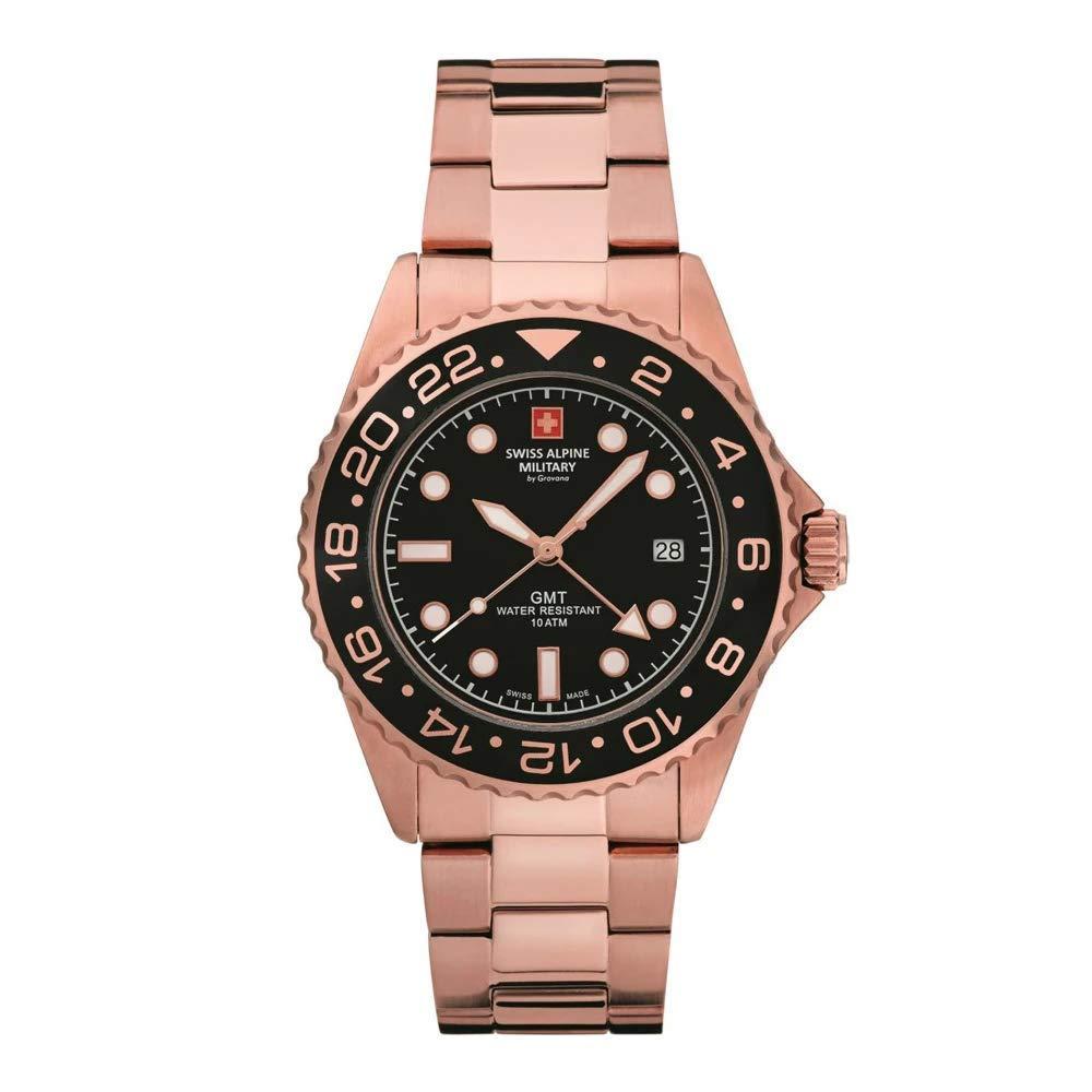 Swiss Alpine Military 7052.1167 GMT Diver Watch 42 mm 10 ATM Water Resistance Black Dial