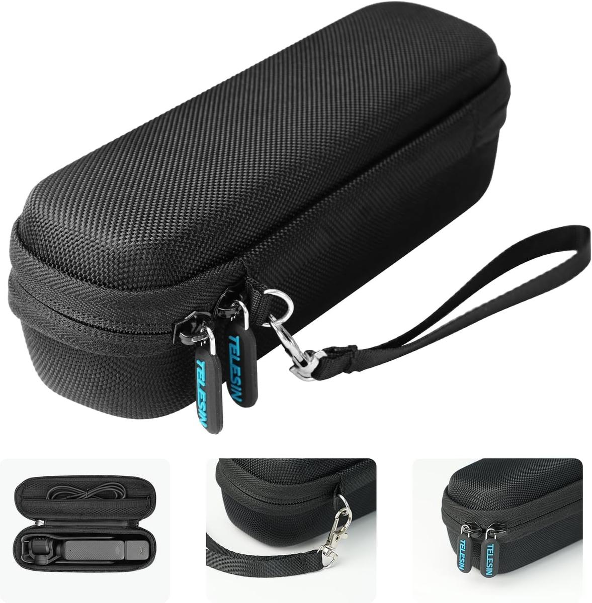 Telesin case for DJI Osmo Pocket 3The Telesin protective case designed specifically for the DJI Osmo Pocket 3 is the perfect solution for anyone who wants to protect their camera in all conditions. Made of high-quality materials, the case provides full protection against mechanical damage such as bumps, drops and scratches. Thanks to its compact and lightweight design, the case is easy to carry and is ideal for traveling for maximum comfort.Durable protection and impact resistanceThe Telesin case is distinguished by its durability thanks to the use of high-density material that effectively protects the device from mechanical damage. Increased durability and impact resistance make the case perfectly protect the DJI Osmo Pocket 3 camera, even in the most demanding conditions. The compression material used in the design further strengthens the protection against drops, minimizing the risk of damage.Soft padding for maximum protectionThe inner part of the case is padded with soft velour lining, which effectively absorbs shocks to protect the delicate parts of the camera. This ensures that even under heavy use, your device remains in perfect condition. The soft lining not only protects against scratches, but also increases comfort by preventing the camera from sliding around inside the case.Thoughtful organization and storageThe Telesin case was designed with functionality and order in mind. There is a specially designated space inside for the camera, cables and memory cards, allowing for easy and safe storage of all necessary accessories. The organization of the space inside the case ensures that all items are always in their place, making it much easier to find and use them at any time.Compact and portable designThe case's compact dimensions (205*68*64 mm) and light weight (112 g) make it extremely easy to carry. An ergonomic hand grip made of durable nylon allows the case to be carried comfortably, and a double zipper provides quick access to the contents. Thanks to its compact size, the case easily fits into a bag, backpack or even a pocket.Durable and lightweight EVA material constructionThe case is made of high-quality EVA material, which is extremely durable and lightweight. This material is not only resistant to mechanical damage, but also to weather conditions, making it an ideal choice for protecting your DJI Osmo Pocket 3 in any conditions. The case is available in a sleek black color that gives it a modern and stylish look.Name:Telesin case for DJI Osmo Pocket 3Manufacturer:TelesinModel:S6-PRC-02-TDJMaterial:EVAColor:BlackWeight:112gDimensions:64*68*205mm
