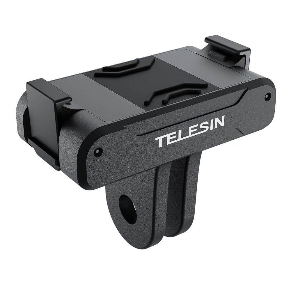Telesin mount for DJI Action 4/3 cameraGain a new perspective in your footage with the Telesin adapter. It was created for DJI Action 4/3 cameras and guarantees instant mounting in the mount with a powerful magnetic base, ensuring stability and security for your device. A metal clip provides additional security to protect your device from unwanted knockdown, ensuring reliability in all conditions.Universal applicationThe Telesin mount is fully compatible with DJI Action 4/3 cameras, making it a convenient solution for users of this model. Mounting with a double cold shoe allows you to easily attach the camera to a selfie-stick, tripod, bike frame, or neck mount, allowing you to record in a variety of scenarios - from extreme sports to everyday shots.Lightweight, portable and durableRobust construction made of high-quality materials makes the camera mount reliable in all conditions. The adapter's light weight and compact size means it can accompany you anywhere, allowing you to mount your camera wherever you need it in no time. This way you won't miss the perfect opportunity to create unique shots.IncludedAdapterScrewManufacturerTelesinModelOA-TPM-T04MaterialNylon + fiber; aluminum alloy, siliconeDimensions40.2 x 21.3 x 33.8 mmWeight22.8 gCompatibilityDJI Action 4/3 cameras