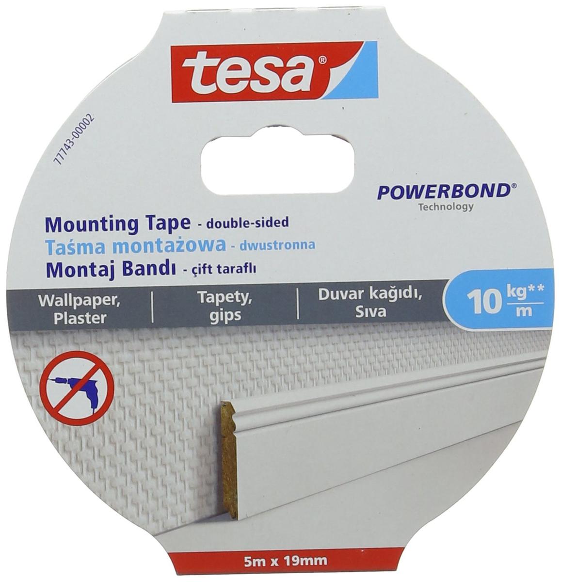 Tesa Powerbond Double-Sided Tape 5 m x 19 mm For Wallpaper And Plaster