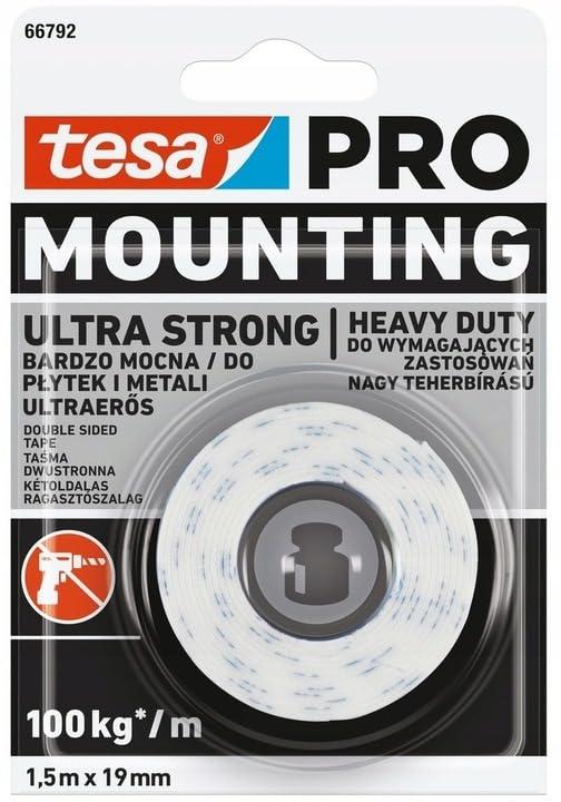 Wytrzymaa, dwustronna tama montaowa ? Do zastosowa wewntrz i na zewntrz pomieszcze: Idealnie sprawdza si na powierzchniach z pytek, drewna, kamienia i wikszoci tworzyw sztucznych, a nawet wyrwnuje niewielkie nierwnoci powierzchni mocowania ? idealnie nadaje si do mocowania znakw, profili, elementw dekoracyjnych, skrytek na klucze i im podobnychNajlepsze rozwizanie do mocowania cikich przedmiotw: pasek tej najmocniejszej dwustronnej tamy Tesa, o dugoci 10 cm utrzyma ciar do 10 kg ? atwe mocowanie, natychmiastowe dziaanieWytrzymuje obcienie do 1 kg na 10 cm tamyNiezawodne mocowanie bez wiercenia dziur: dziki tamie TesaPRO Mounting Ultra Strong eliminuje korzystanie ze rub, wkrtw lub gwodzi, uatwia szybkie i atwe mocowanie bez uycia narzdziGrubo cakowita 1150?mKolor biaaKolor paska zabezpieczajcego biay/czerwonySubstancja klejca kauczuk sztucznyOdporno na starzenie (uv) redniaOdporno na temperatur, dugotrwaa do 40 COdporno na wilgo dobra