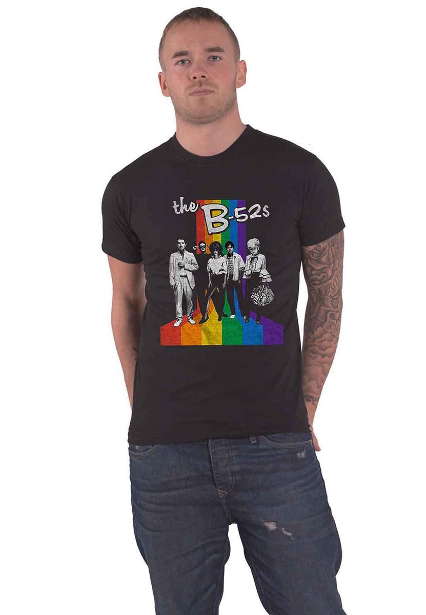 The B-52's Rainbow Stripes T-Shirt Unisex Black 2XL