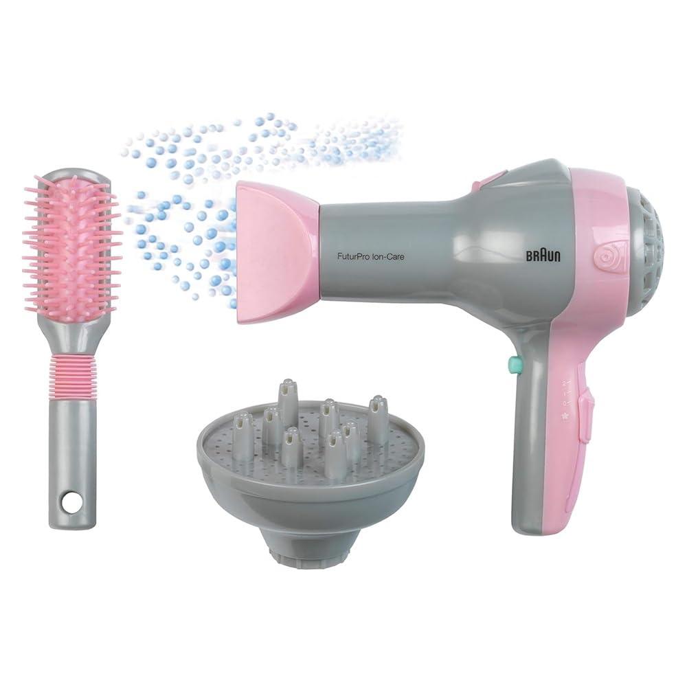 Theo Klein 5850 Braun I Hair Dryer Toy Multi-Coloured With Brush And Diffuser For Kids 3 Years And Up