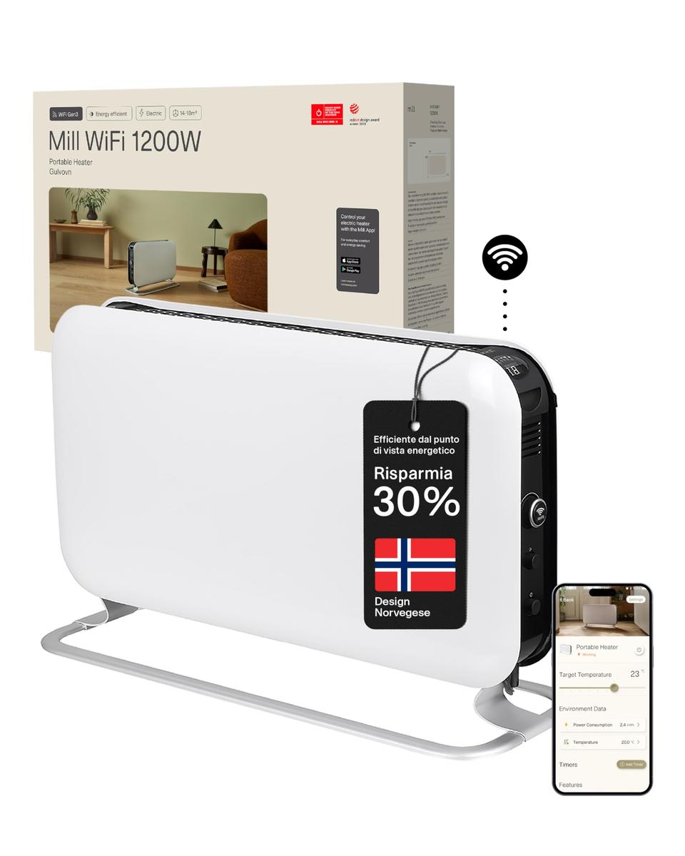 Mill CO1200WIFI3 Convection Heater 1200W White 410 x 210 x 620 mm
