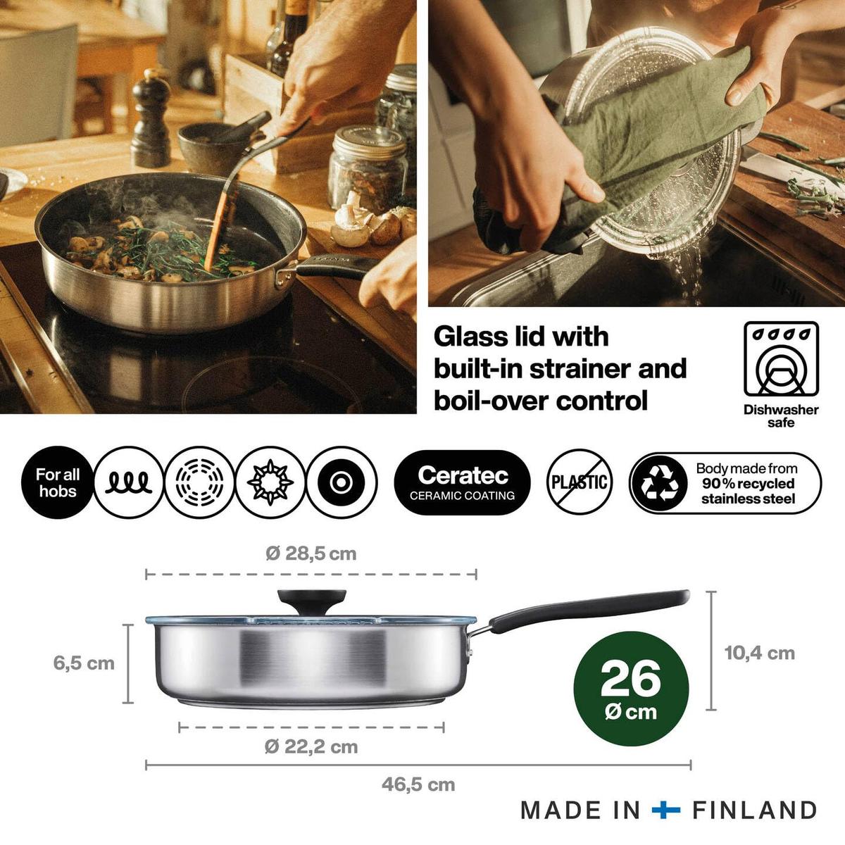 Κεραμικό τηγάνι FISKARS FF, με καπάκι, αντικολλητική επίστρωση, 26 cm, 1 τμχ.
