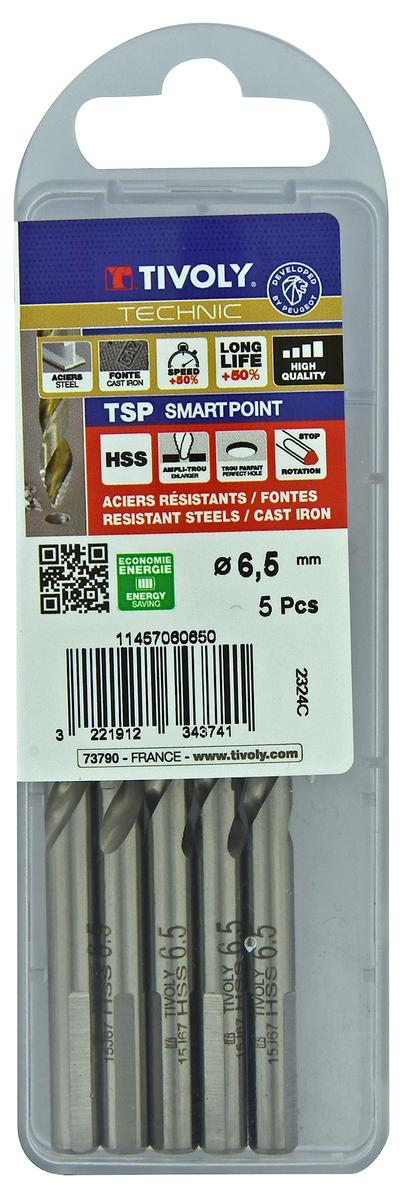 Tivoly HSS Metal Drill Bit 6.5 x 101 mm Smart Point Tip 5 Pieces