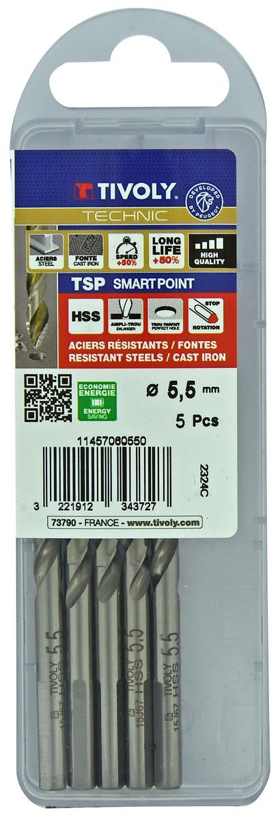 Tivoly Metal Drill Bit 5.5 x 93 mm Smart Point Tip 5 Pieces