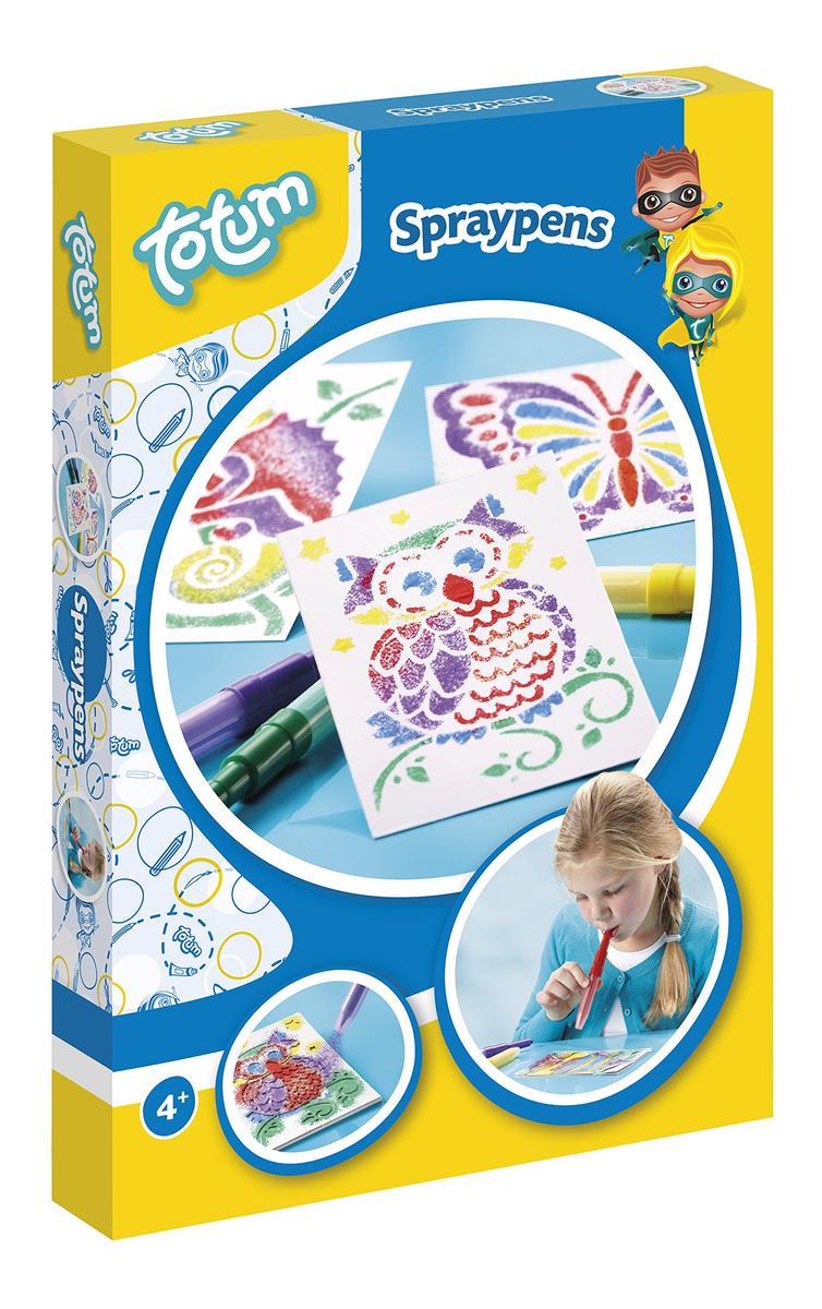 Totum Creativity Spray Pens 5 Colors 4 Stencils Blank Paper