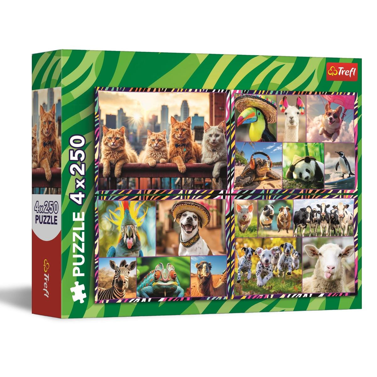 Trefl Funny Animals Puzzle 4 x 250 Pieces 33.9 x 23.9 cm
