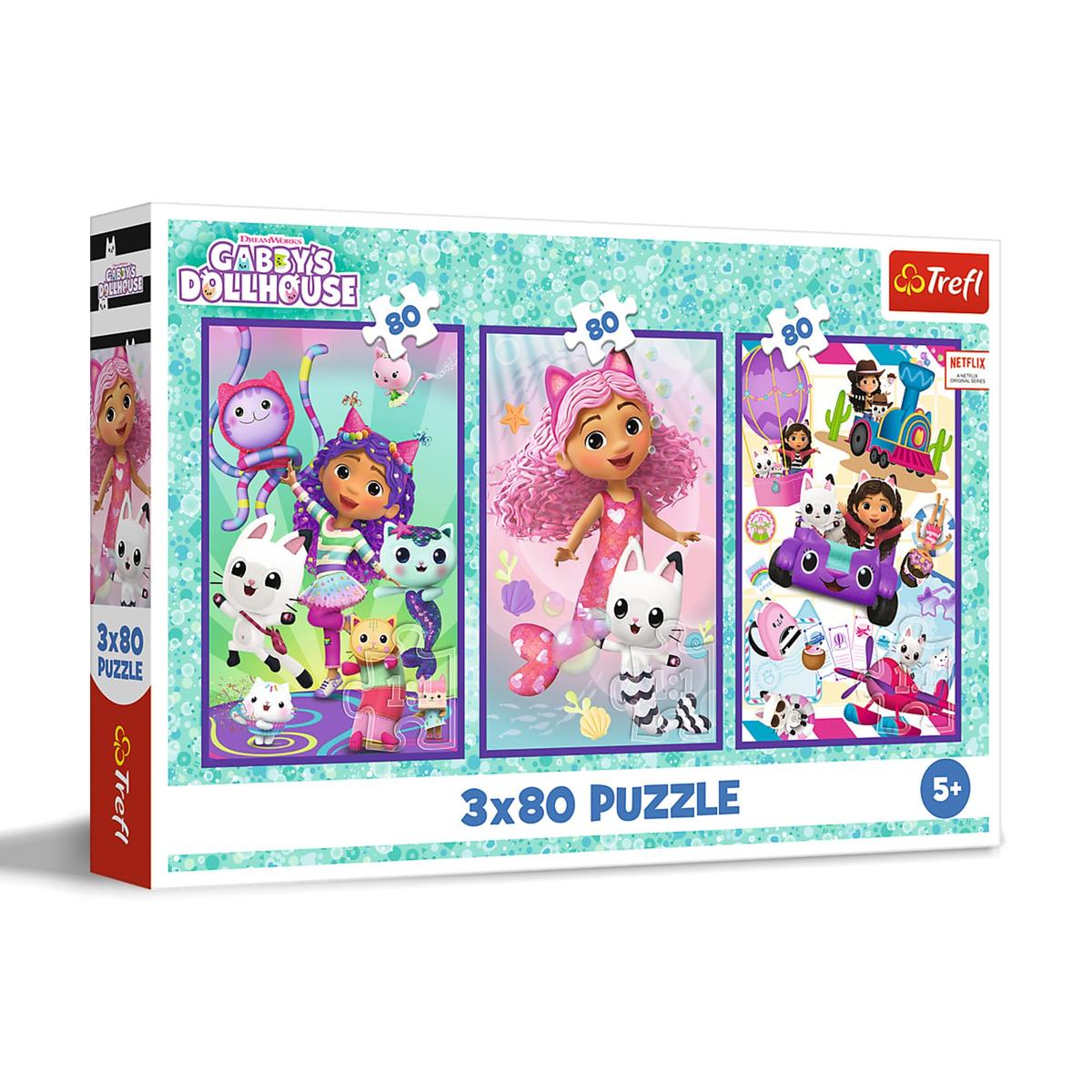 As an interactive game, puzzles are a fun way to build important cognitive skills through hands-on learning. Puzzles are perfect for completing solo or in a group. Completed puzzle size 18,0 x 27,5 cm. A set of four jigsaw puzzles of 3 x 80 pieces is a great way to have fun while improving the ability to put more and more elements together.