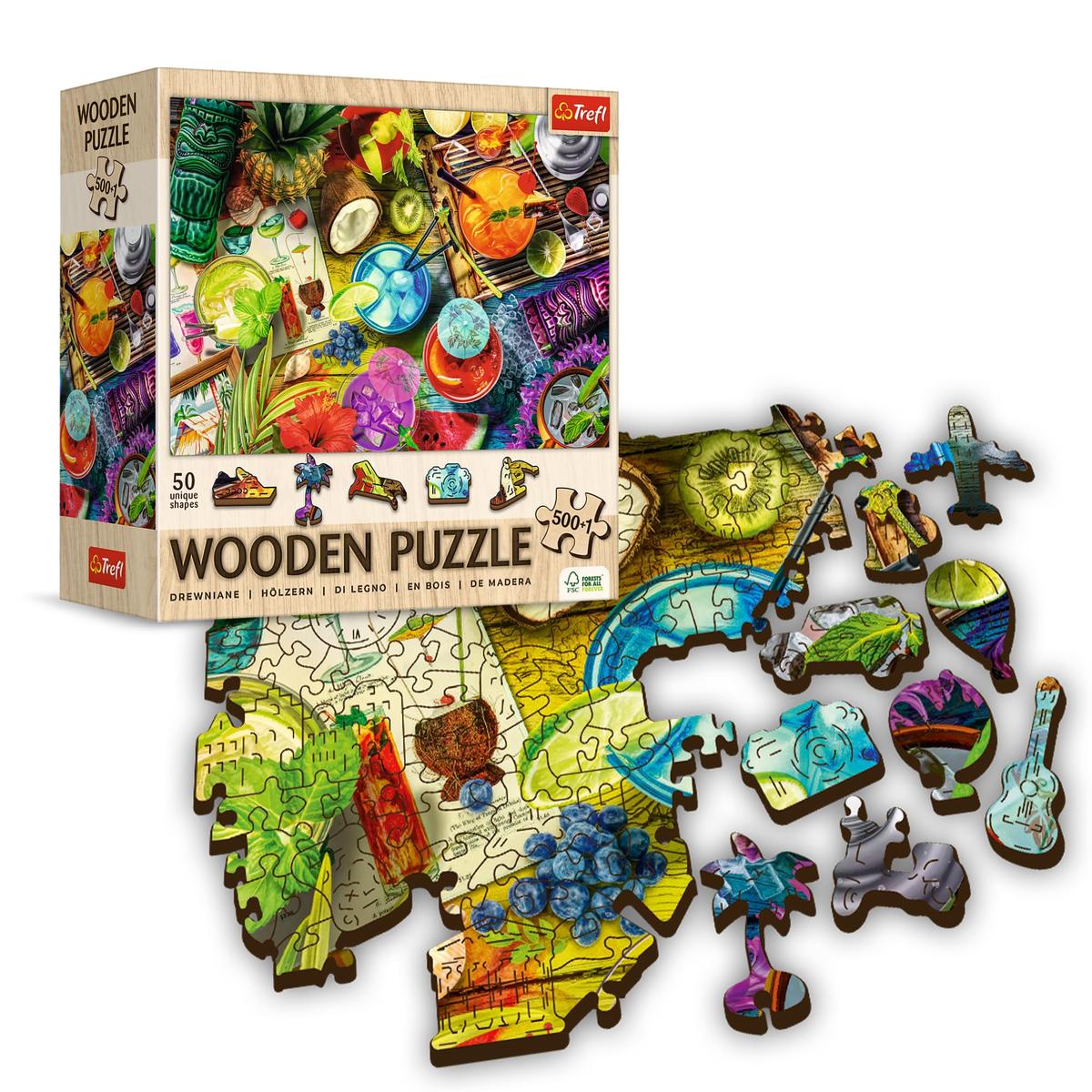 Trefl Wooden Jigsaw Puzzle Colorful Cocktails 500 Plus 1 Pieces Irregular Shapes 375 x 254 mm