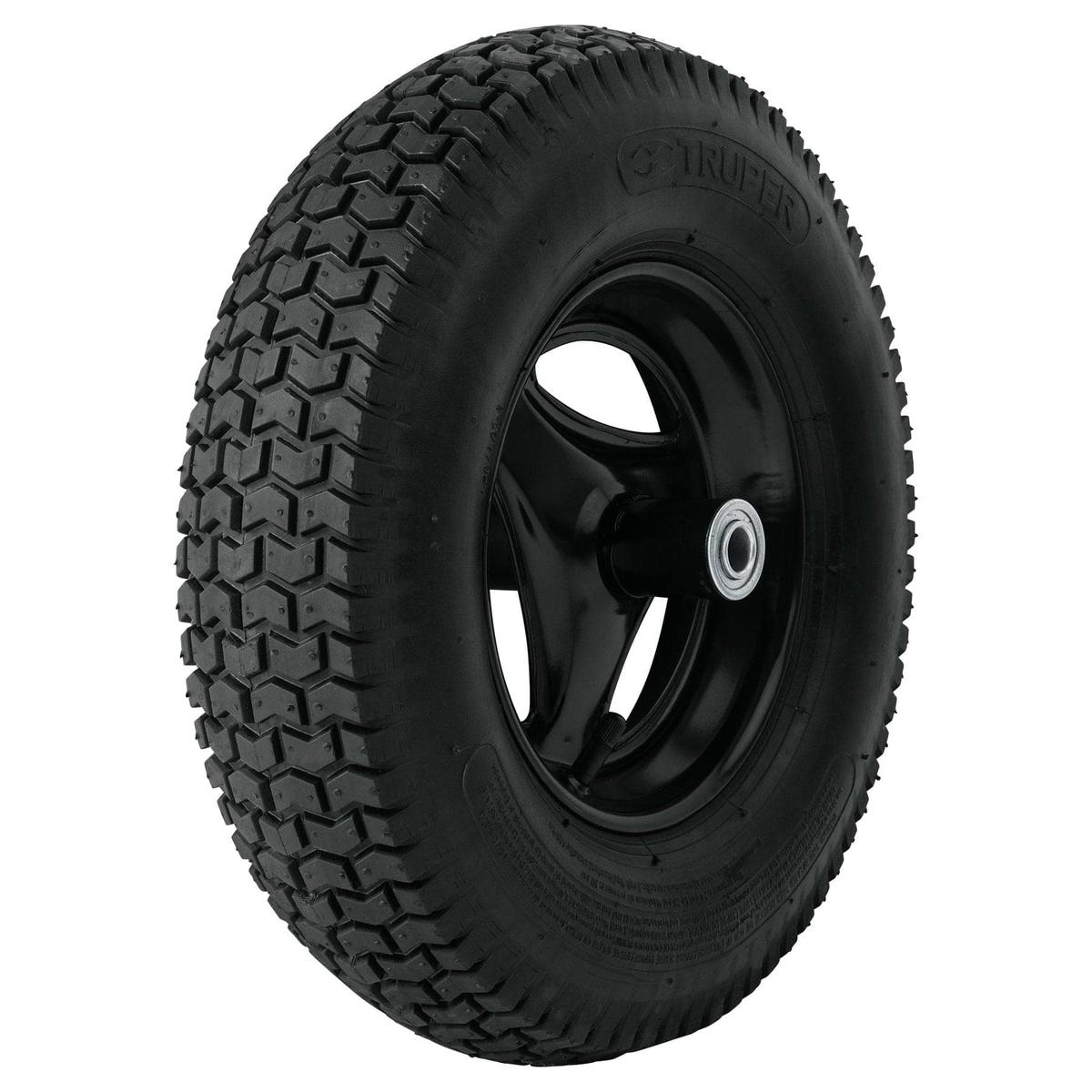 Truper Reinforced Pneumatic Wheelbarrow Wheel 41 x 10 cm With Shaft and Ball Bearings