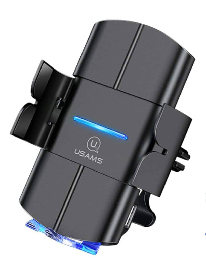 USAMS US-CD133 Automatic car holder with fast 10W wireless charging, mounted to the ventilation grille.Thanks to the use of an intelligent chip, the handle detects the device and automatically locks the arms, and identifies devices with the option of fast inductive charging.Phones without wireless charging can be locked with the side buttons. The rotating head makes it easier to use, and thanks to the triangulation principle, our phone is stable even during heavy braking.- 10W high power, Fast charge, fast wireless charging. The smart chip identifies devices with the option of fast inductive charging.- Easy loading. Built-in independent large coil, 0.1 second response time, automatically turn on wireless charging mode, 8mm induction distance.- Easy to use. Automatic closing and automatic opening (arms open by pressing control buttons)