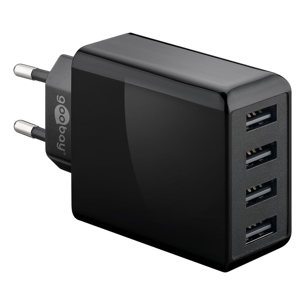 USB A Charger 4 Ports Black 3A 30W