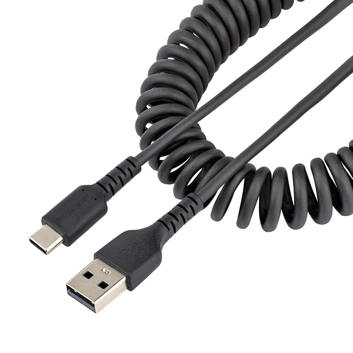 USB A TO C CHARGING CABLE - 50CM (20IN) COILED CABLE BLACK