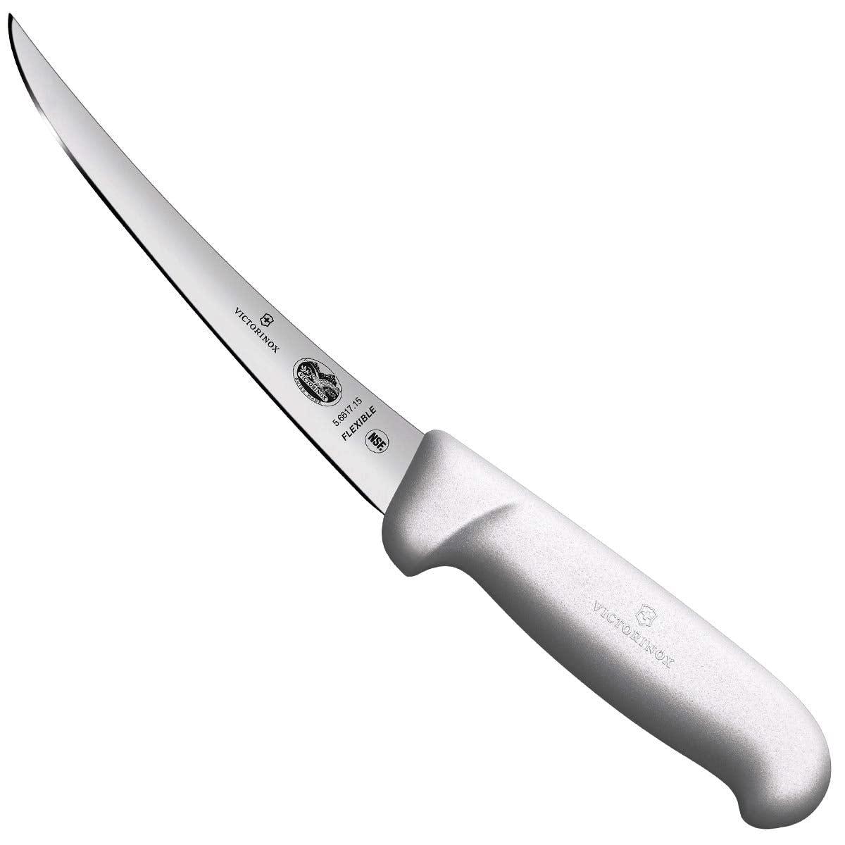 Victorinox Fibrox Boning Knife 15 cm Flexible Narrow Curved Blade White Handle