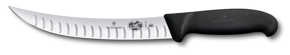 Victorinox Fibrox Butcher Knife Fluted Edge Curved Narrow Blade 20 cm Black