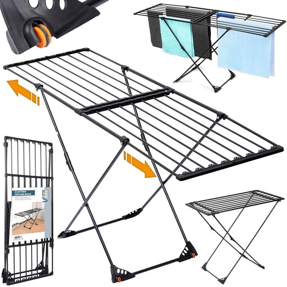 Vilde Floor Drying Rack Extendable Metal Black XXL 110 to 189 cm 19 m Drying Surface 30 kg Capacity