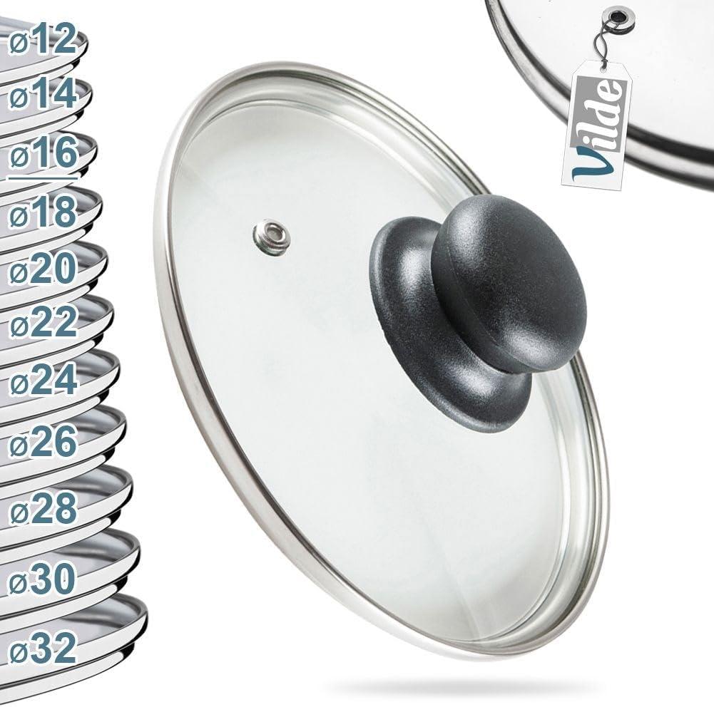 Vilde Glass Lid Heat Resistant 16 cm With Steel Rim and Handle