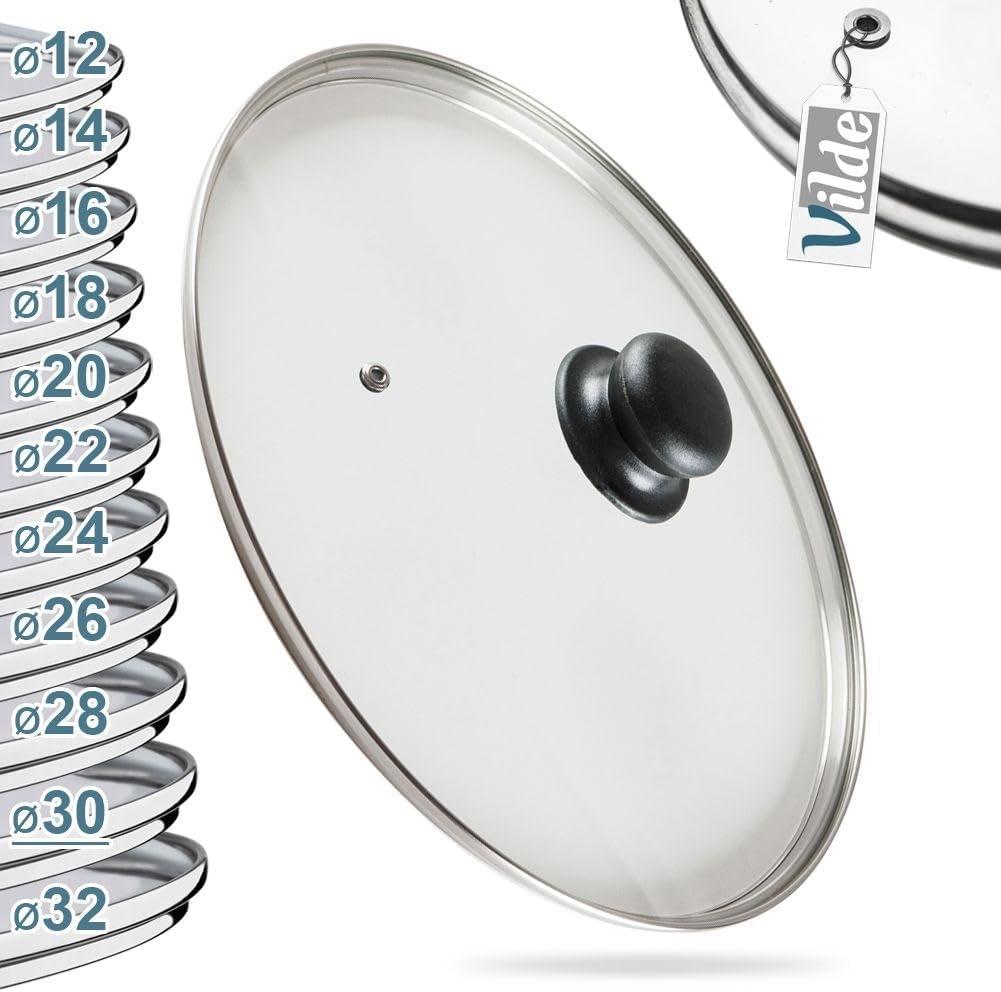 Vilde Γυάλινο Καπάκι Ασφαλές για Πλυντήριο Ανθεκτικό στη Θερμότητα 30 εκ με Οπή Εξαερισμού