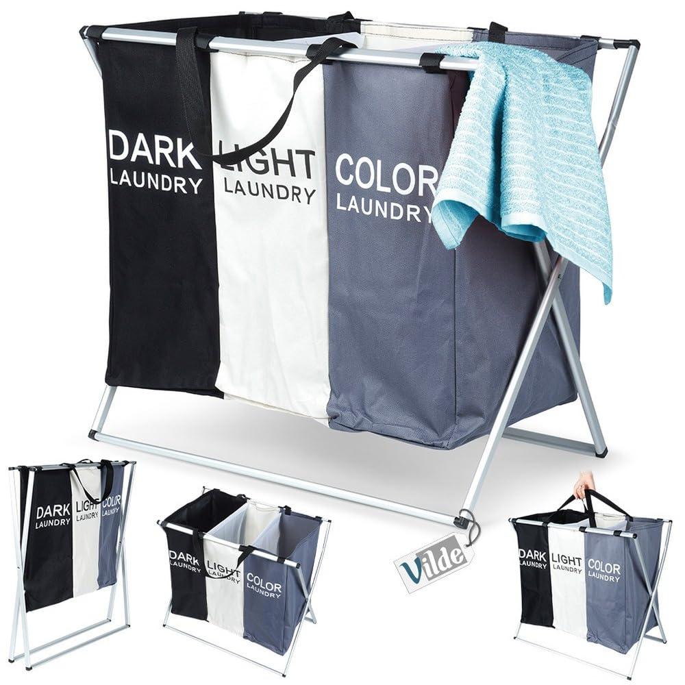 Vilde Laundry Basket 105L Three Compartments Metal Frame Grey Beige Black