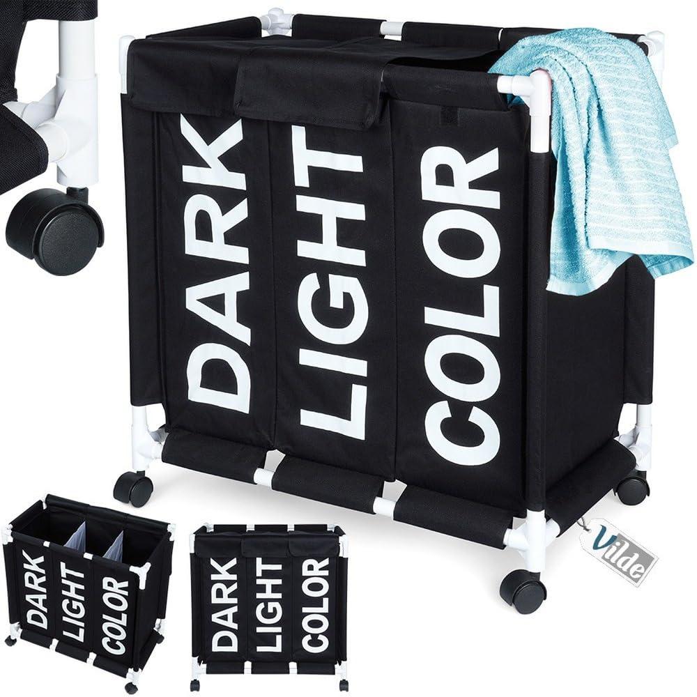Vilde Laundry Basket Foldable Three Compartments 60.5 x 35 x 65 cm With Wheels