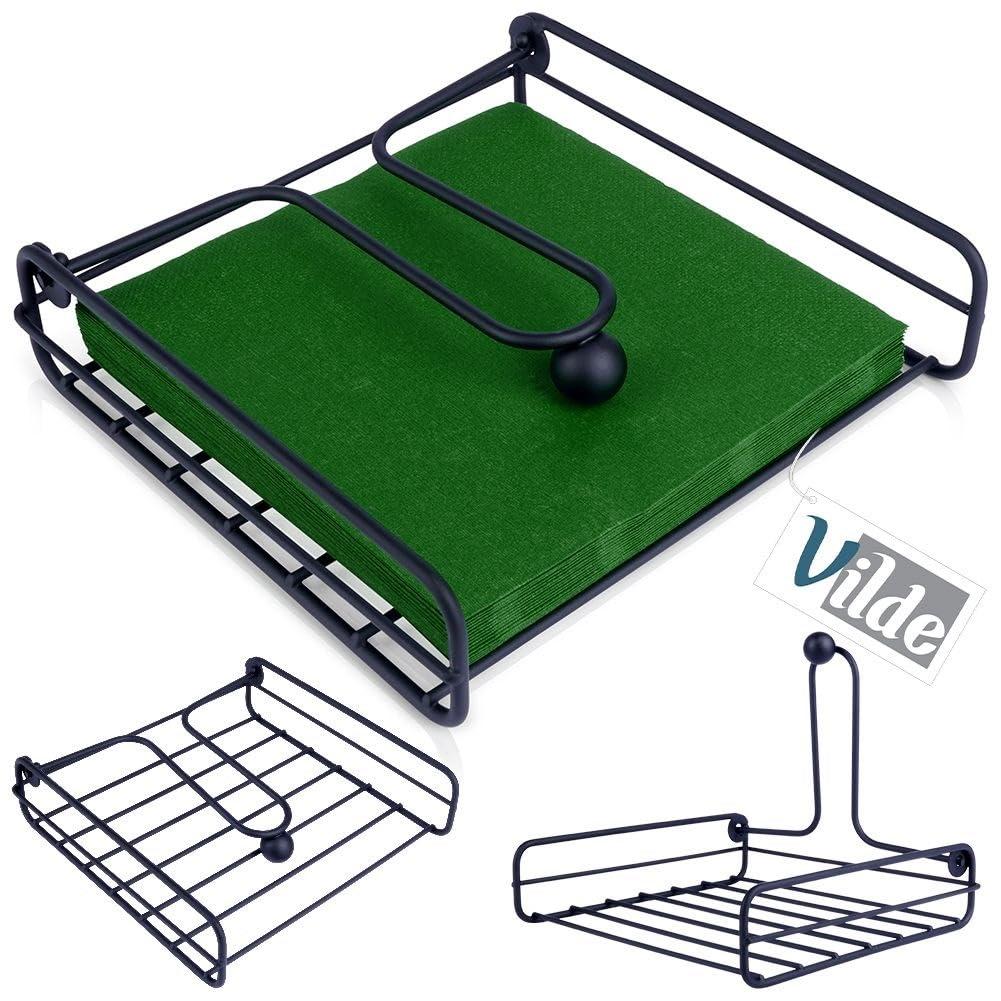 Vilde Μεταλλική Θήκη Χαρτοπετσέτας Μαύρη με Μηχανισμό Πίεσης 19 x 19.5 cm για Τραπέζι