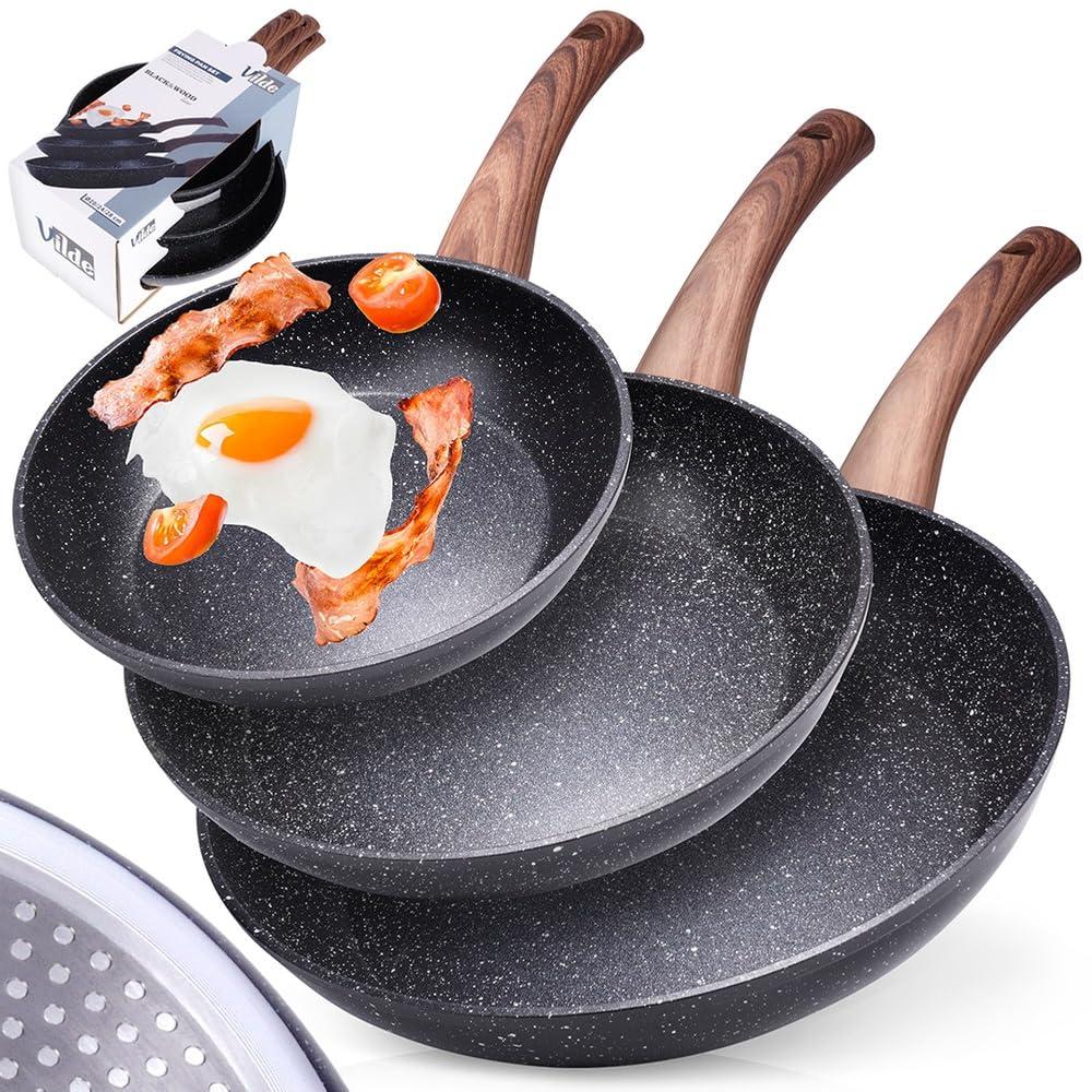 Vilde Σετ Κατσαρολών 3 Τεμαχίων Αέριο Επαγωγή Γρανίτης Αντικολλητική Επίστρωση
