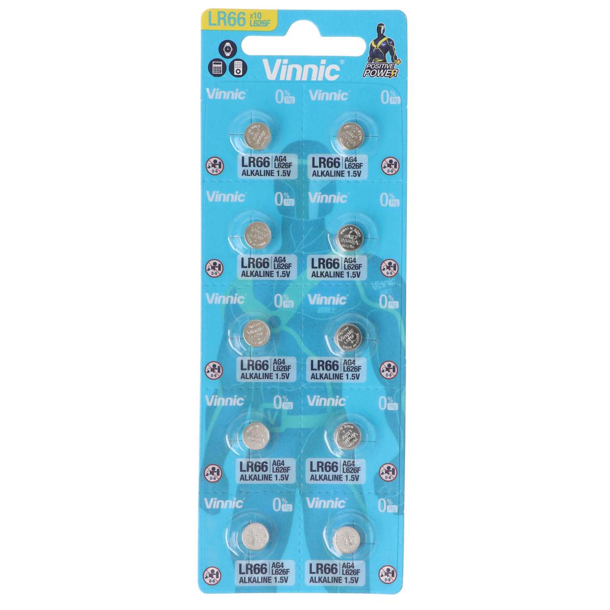 Vinnic AG4 Alkaline Batteries 1.5V LR626 LR66 10 Pack Blister