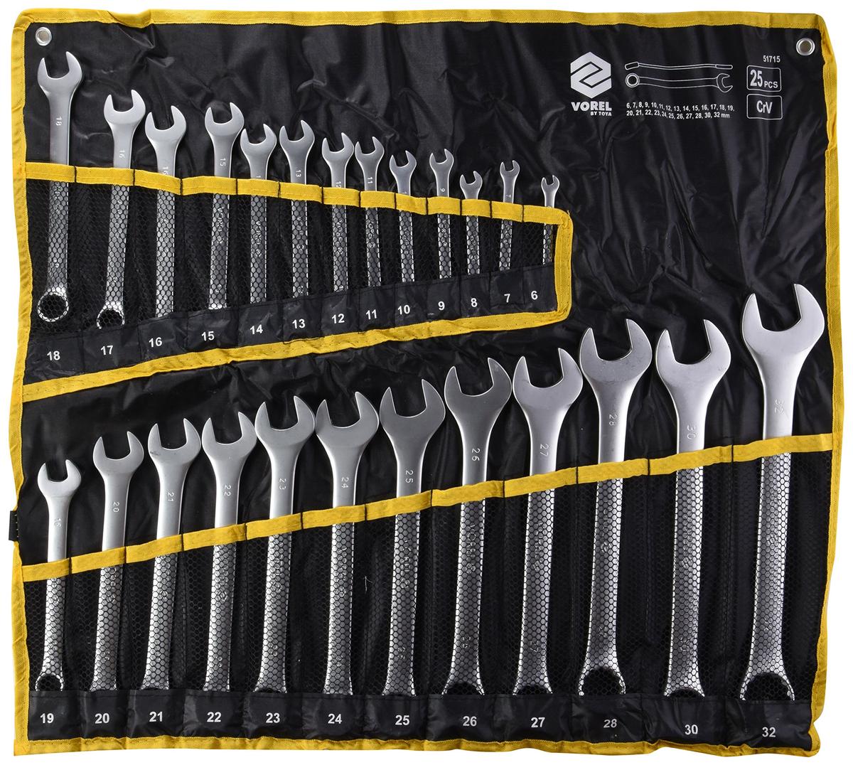 Vorel 51715 Combination Wrench Set 25 Pieces 6 to 32 mm Chrome Vanadium Steel