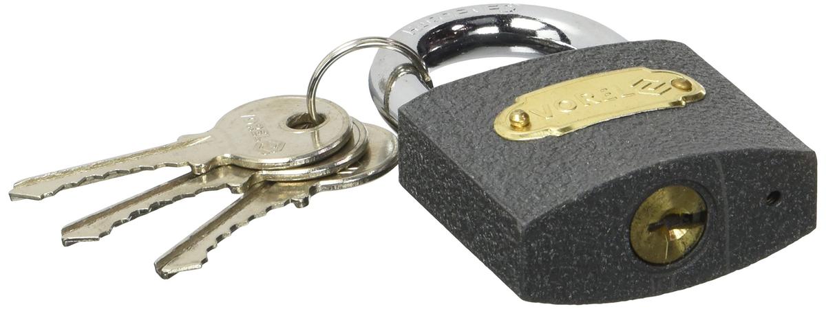 Vorel Cast Iron Padlock 50 mm With 3 Keys Brass
