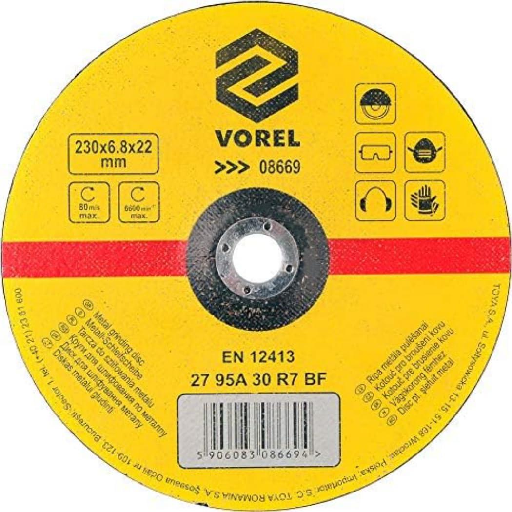 Vorel Metal Grinding Disc 230 x 6.8 x 22.2 mm Convex 6600 RPM