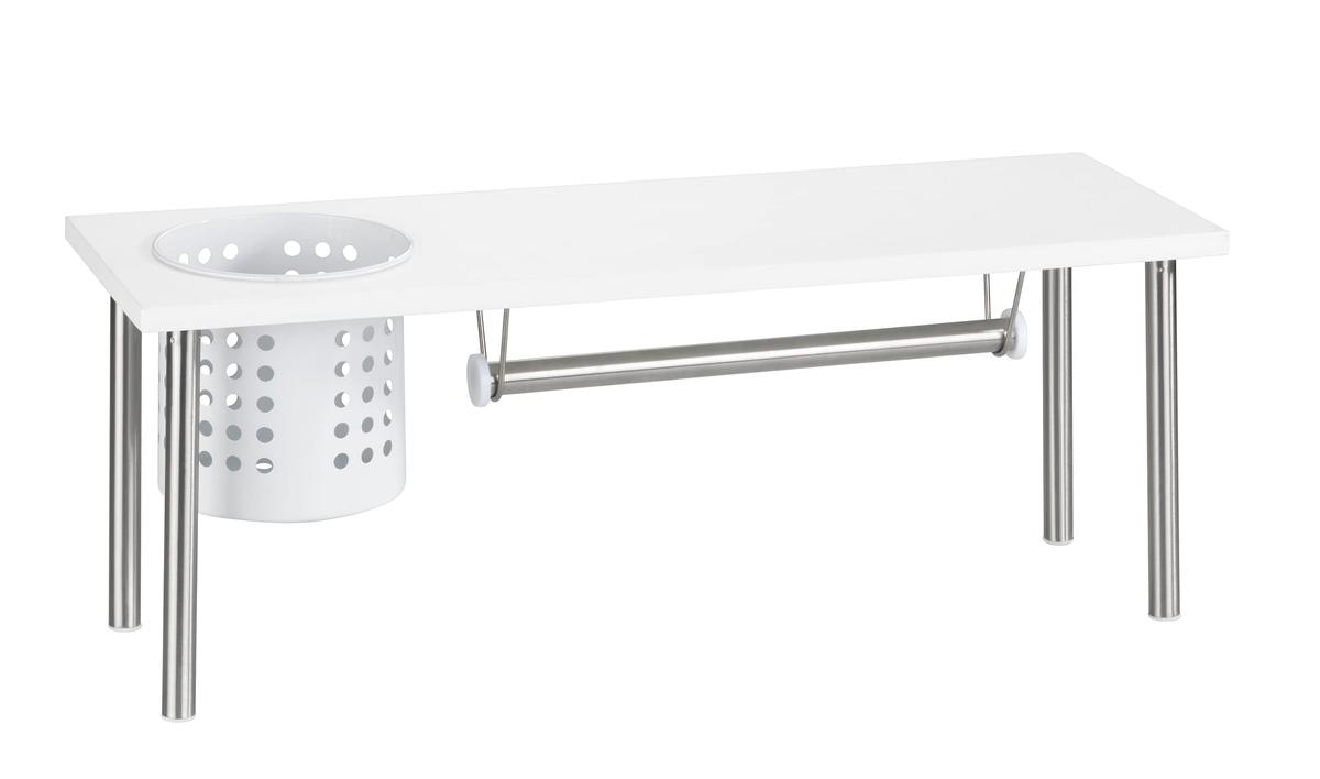 Το ράφι κουζίνας της μάρκας BLANCO από την WENKO με θήκη χαρτιού είναι ένα λειτουργικό αξεσουάρ με ελάχιστο σχεδιασμό, κατασκευασμένο από υλικό MDF. Το ράφι παρέχει χώρο για μαχαιροπήρουνα και χαρτί κουζίνας, καθώς και επιπλέον επιφάνεια αποθήκευσης. Οι διαστάσεις του είναι 55 x 21 x 18 εκ.