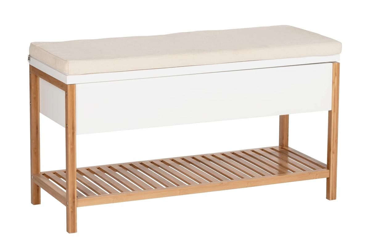 Wenko Finja Shoe Cabinet with Seat Bamboo 35 x 90 x 52 cm White